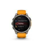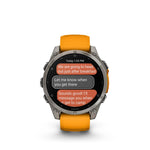 Be limitless. The fēnix® 8 multisport GPS smartwatch is built for serious athletes and outdoor adventurers who want to push beyond their limits. It features a bright 1.4” AMOLED display with scratch-resistant sapphire lens, durable titanium bezel and advanced strength training plans and targeted workouts to boost your body’s stamina and performance. Pair with your smartphone for on-wrist calling with the built-in speaker and mic. Plus, there’s a powerful built-in LED flashlight for after-dark visibility. Go strong with up to 16 days of battery life in smartwatch mode.