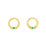Emerald Open Circle Yellow Gold Stud Earrings