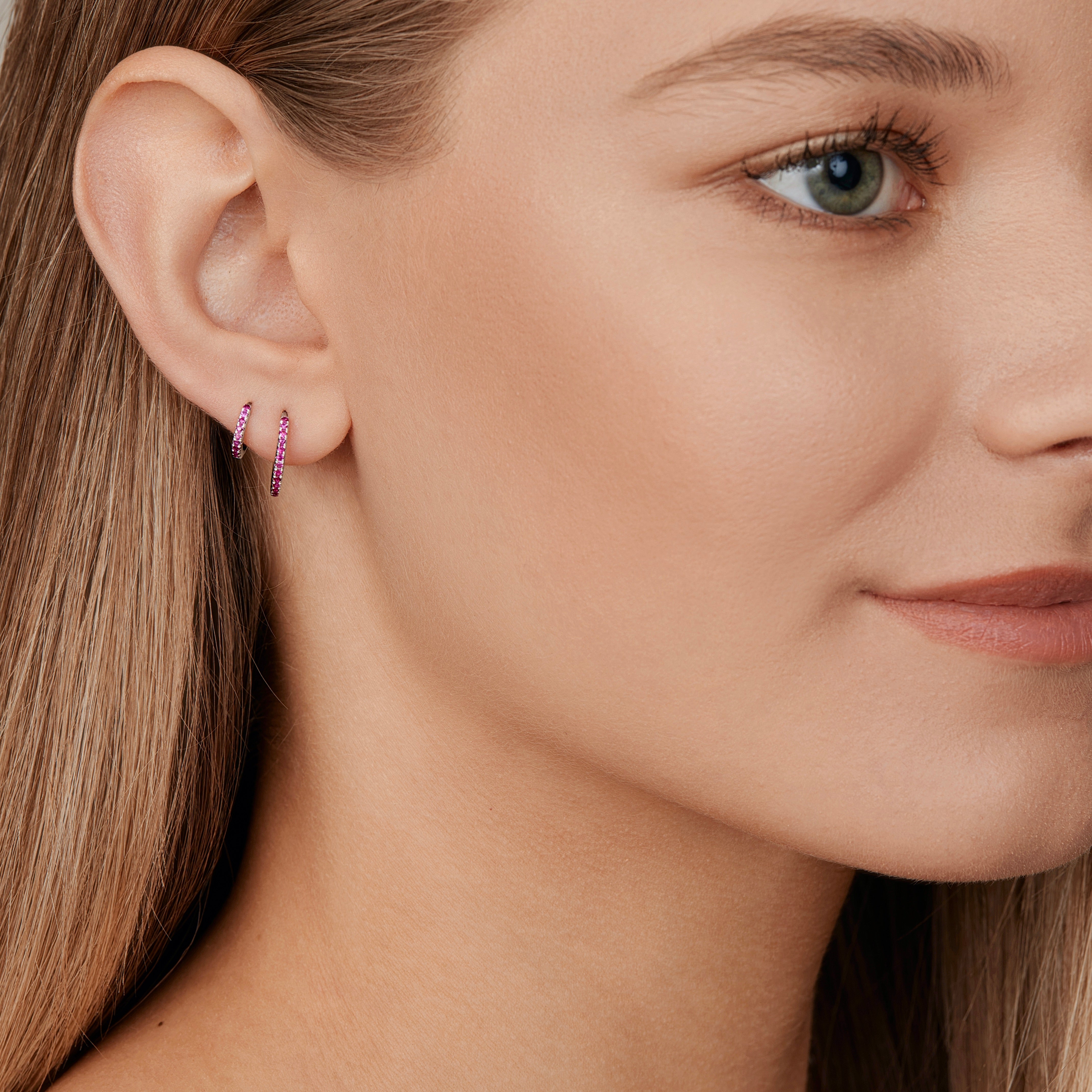 A modern take on a classic silhouette, these ruby huggies capture the perfect balance of colour and sophistication. The double-sided setting maximises radiance from every angle, while the secure hinged design ensures comfort and longevity.