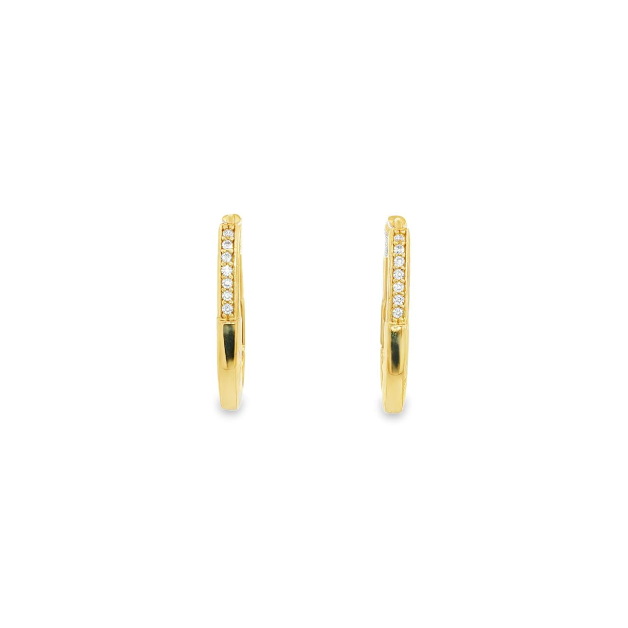 Contemporary and expressive, these 9ct yellow gold huggie earrings feature an elongated oval silhouette inspired by a modern carabiner clasp. Hinged at the back for ease and comfort, the top section is accented with a sparkling row of cubic zirconias, adding subtle lift while maintaining an everyday wearable aesthetic.
