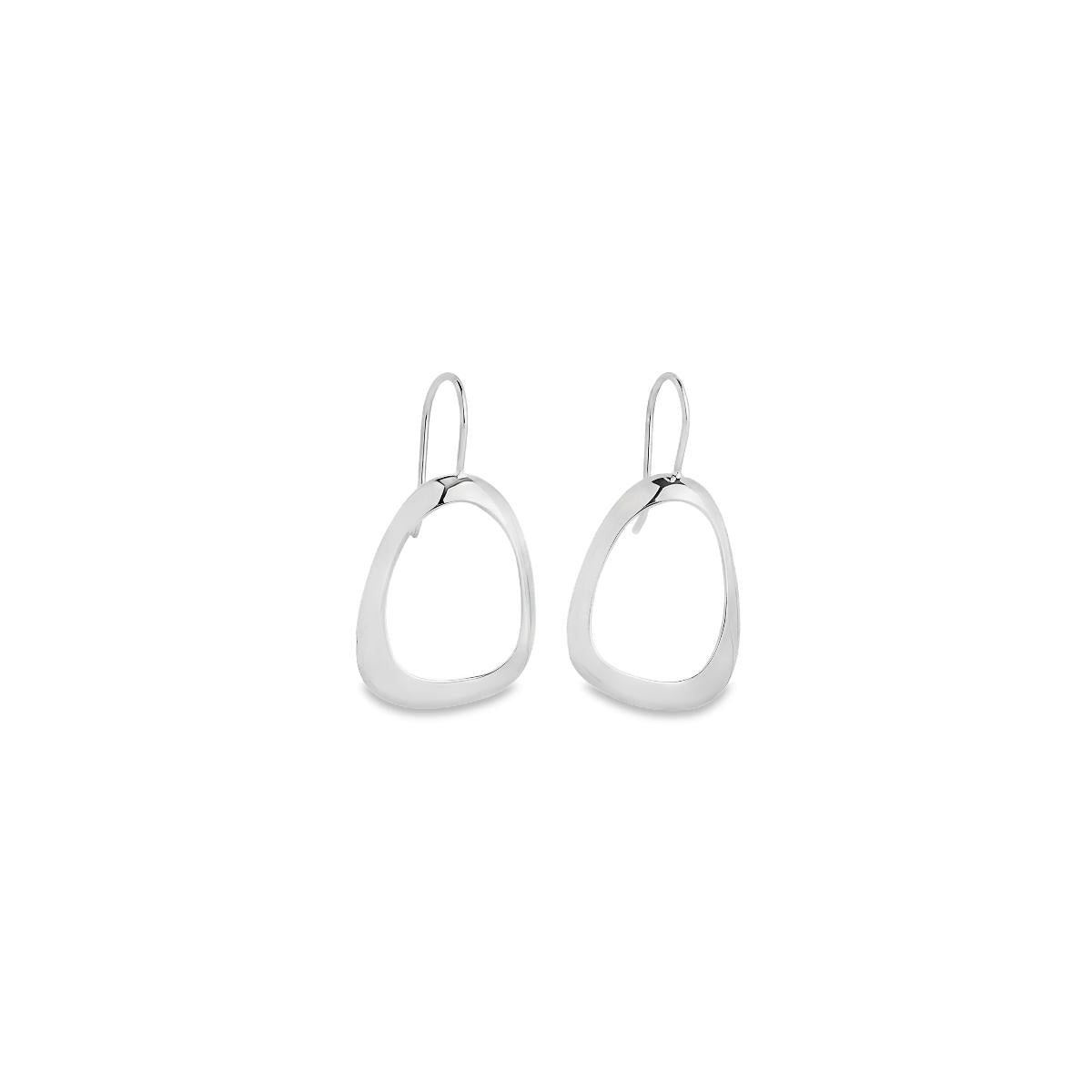 Elegant in their simplicity, these sterling silver drop earrings feature a refined open ovoid silhouette suspended from classic hook fittings. The elongated shape creates gentle movement and a flattering line, offering understated sophistication that transitions effortlessly from day to evening.