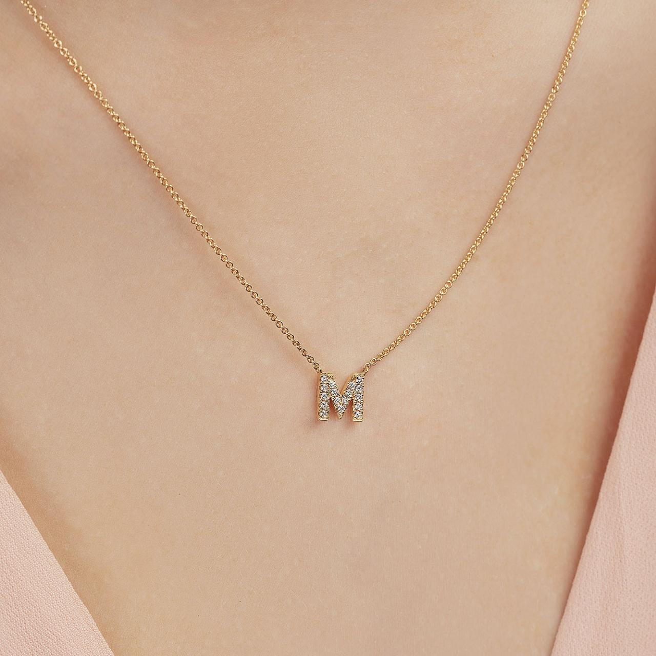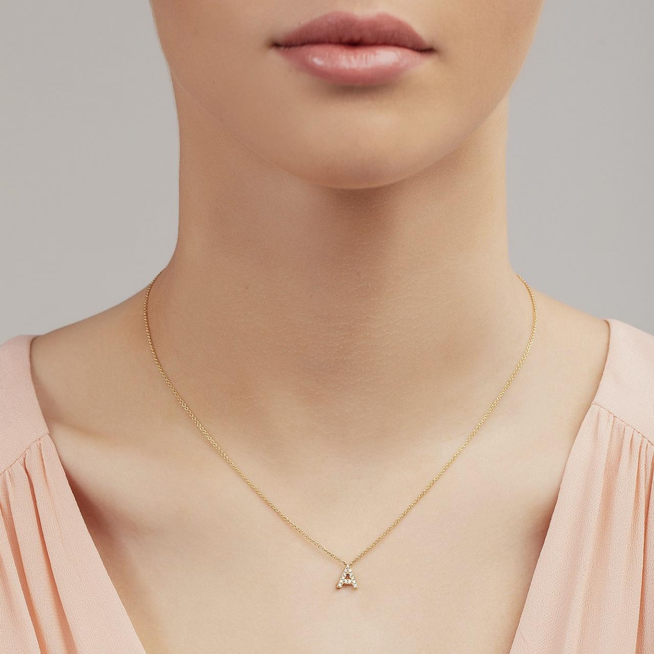 Diamond Initial Necklace Yellow Gold