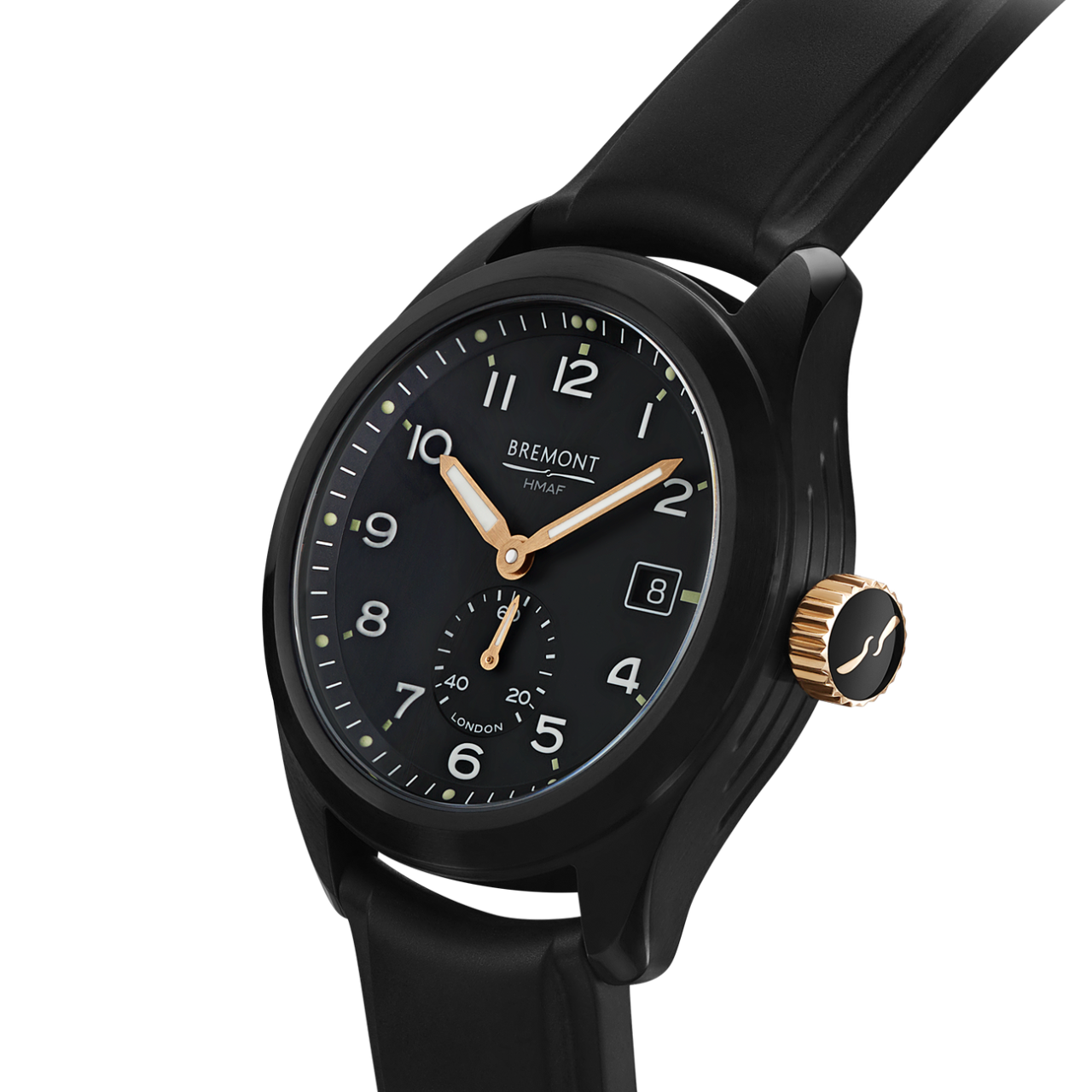 - Black rubber Temple Island strap with bronze buckle strap, 40mm