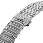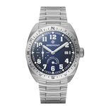 - Automatic field watch with blue dial and stainless steel bracelet.