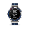 DESIGN 010-02648-12Built for living life at the helm, this luxury modern tool watch features a race-inspired striped jacquard-weave nylon strap and a stunning AMOLED touchscreen display with traditional button controls. The 46 mm case is made of Grade-5 titanium for an ultra durable design.